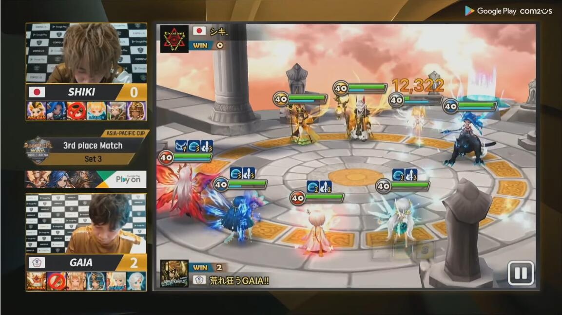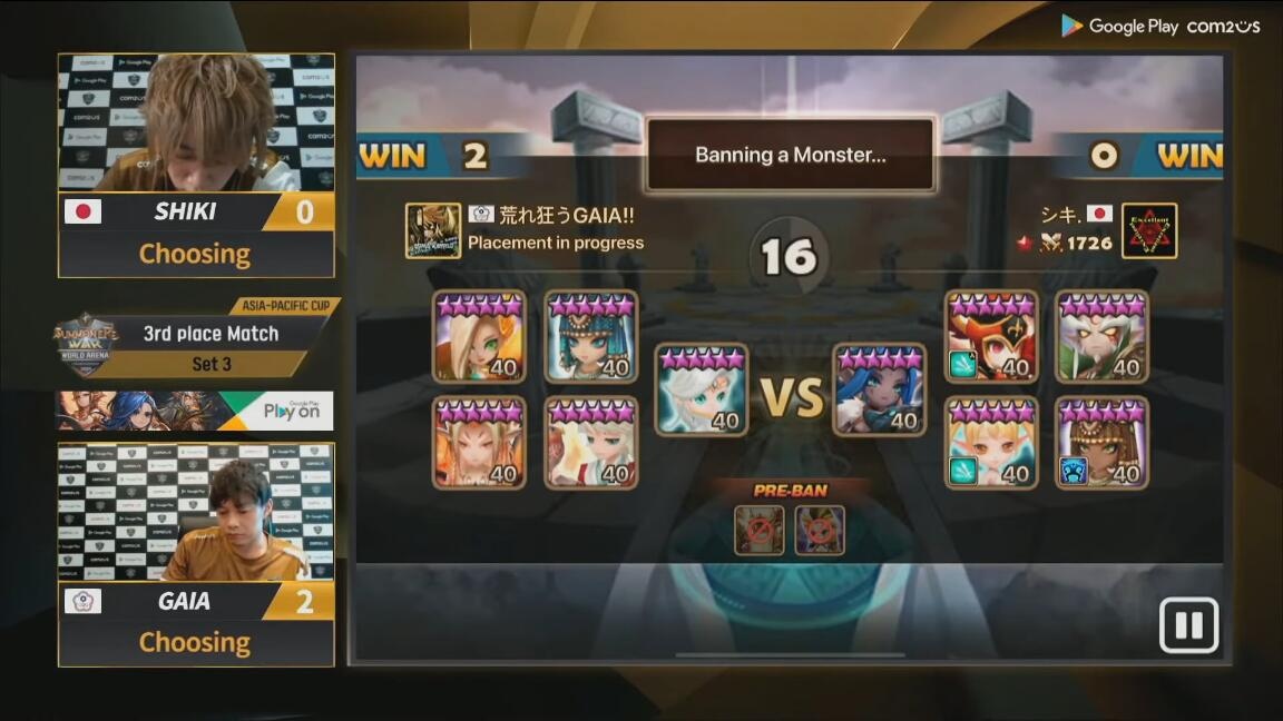 台灣選手「GAIA」在最後一場比賽中拿出秘密武器「光魔法弓手」,以超高速度的攻勢收掉「SHIKI」的「光仙女女王」形成4打3的局面,即便「SHIKI」擁有能夠復活隊友的「風德魯伊」也無力回天,由台灣選手「GAIA」取得勝利!