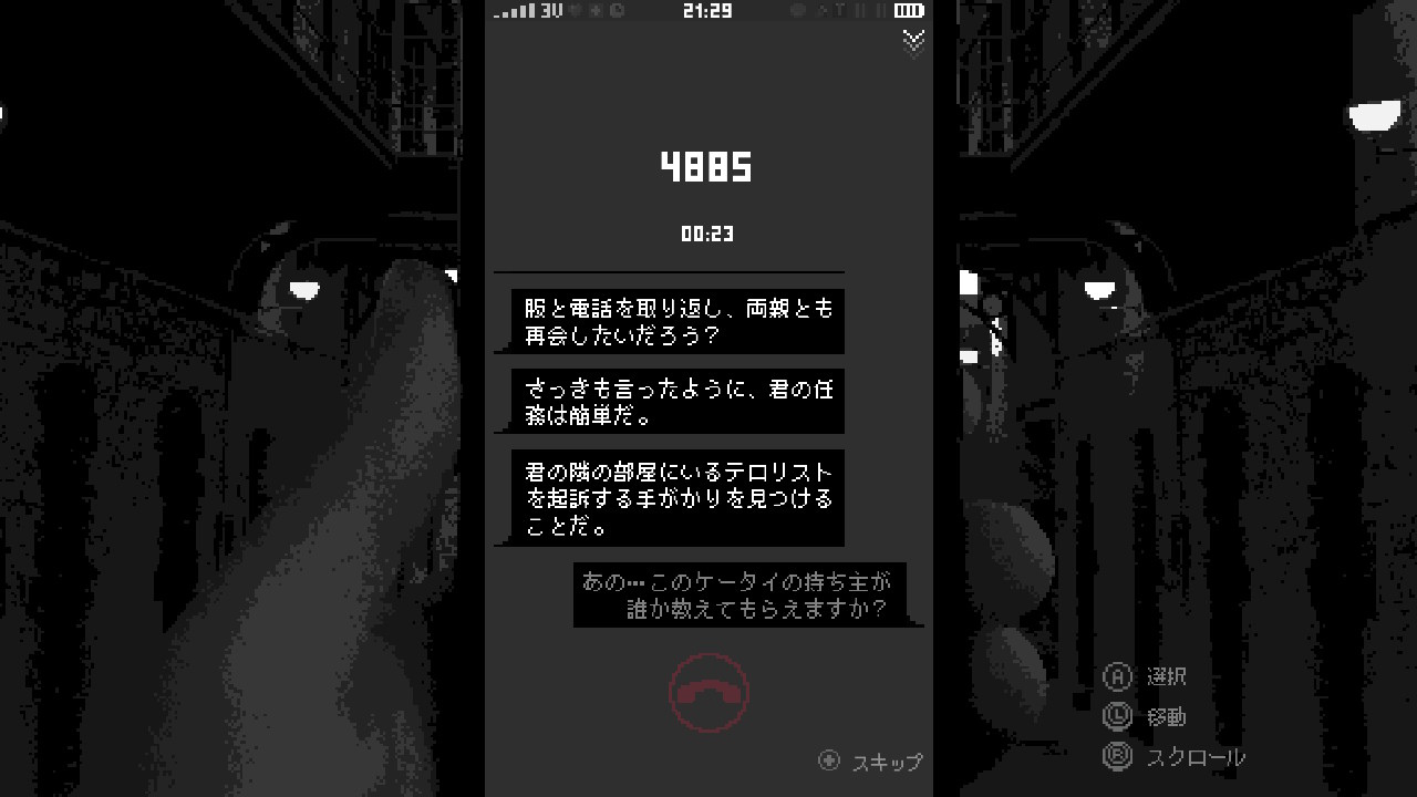 玩家被關在陌生的地方,拿著一台不知是誰的手機。在管理體制下根據國家的強制要求,必須查看手機裡的內容來尋找這手機主人的恐怖嫌疑證據並作出申告。當然在最初甚至不知道屏幕的密碼是怎樣去解鎖。手機上留下的各種線索,從窺視和短消息的記錄等作推斷,確定社交媒體賬戶的 ID 和密碼,以及進一步作「恐怖分子嫌疑人的搜查」。