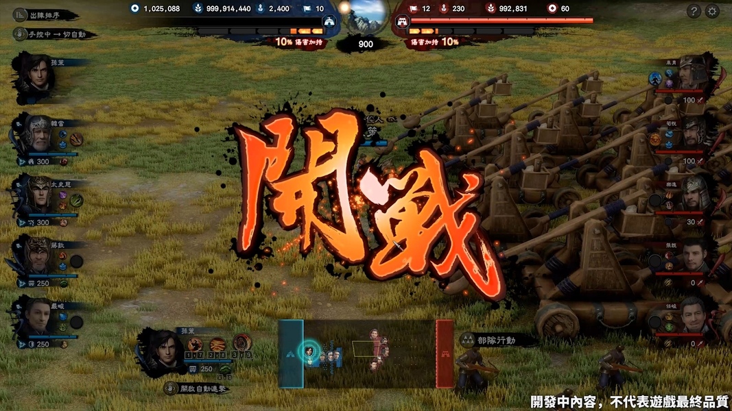 官方今日釋出完整戰鬥流程影片,在戰鬥前期,玩家必須先進行武將指派、技能和裝備的配置,同時玩家將進行出戰前的陣型配置,此時必須觀察敵方的兵種,充分利用兵種相剋的特性,才能克敵制勝。在戰鬥過程中,玩家可即時切換不同武將,並充分利用不同武將的技能,接續性的打出爽快感,可以觀察到在整個三群8戰鬥過程中,同時保留了戰前部陣的策略性與單控武將即時的操作感。