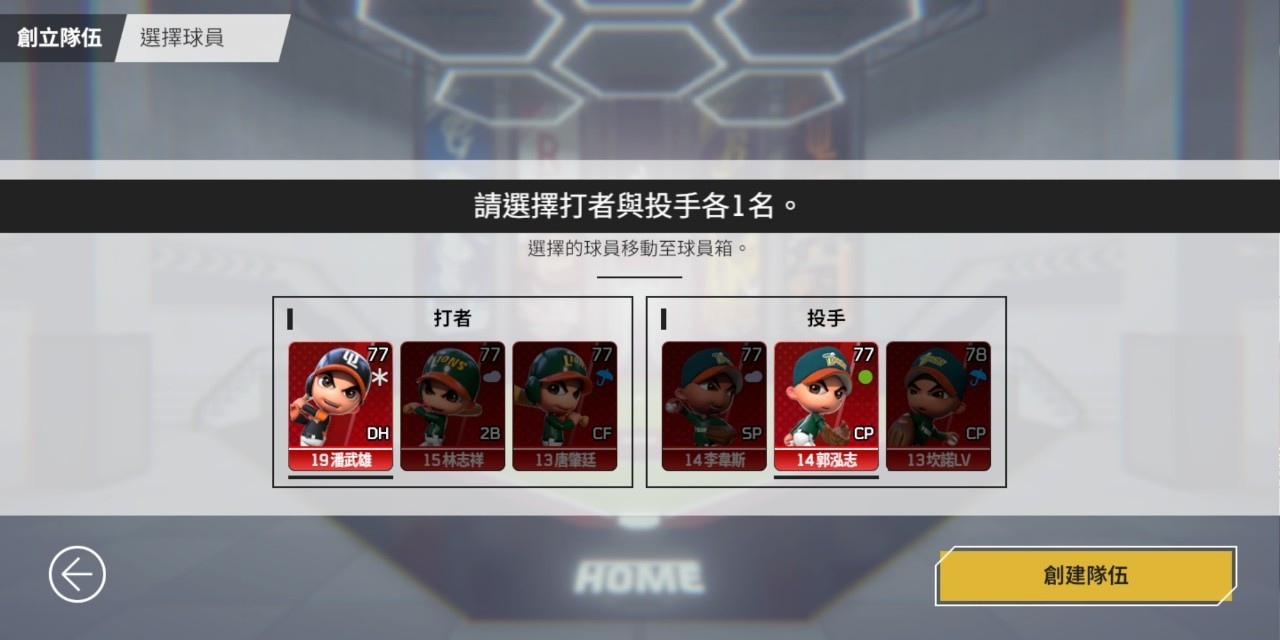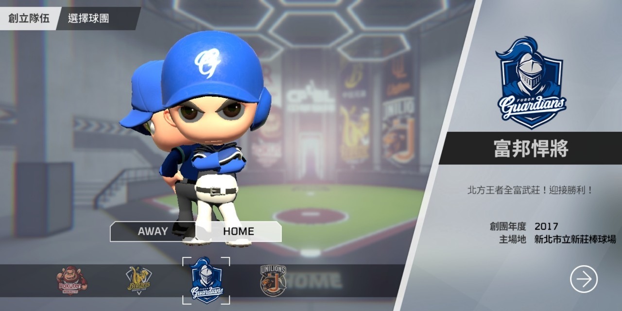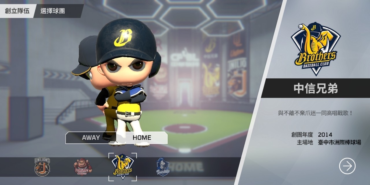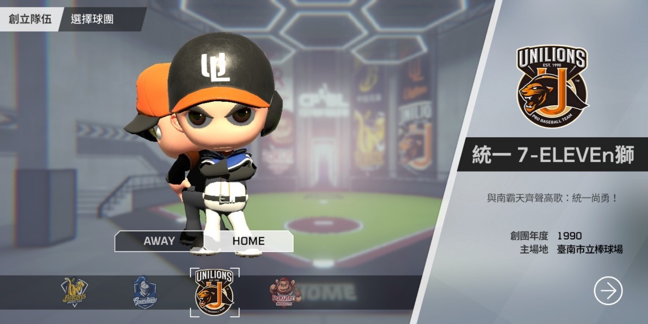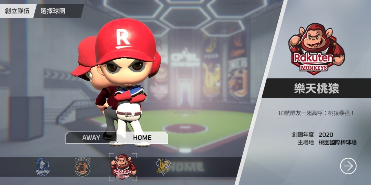 對有玩過《全民打棒球》系列的玩家來說印象最深刻的就是可愛的 Q 版人物以及爽快的巨砲打擊,這些優點通通都有被《全民打棒球 Pro》好好保留下來,進入遊戲就可以欣賞到一小段可愛帥氣的比賽動畫,接著就能從中職四支隊伍中選擇喜愛的球團以及一名投手和一名打者作為主力啦。