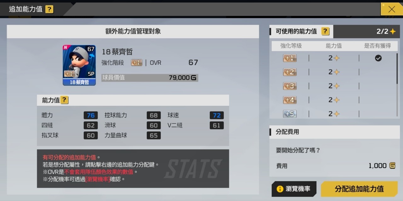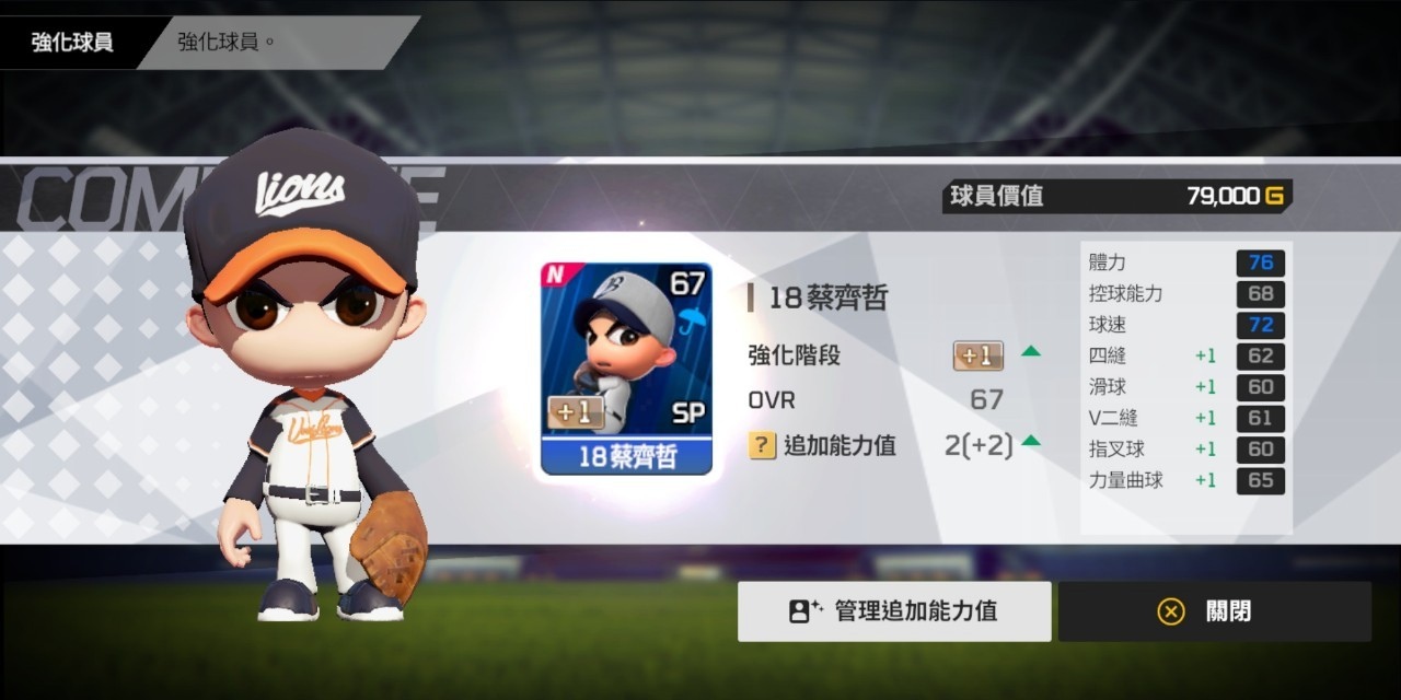 球員養成也是《全民打棒球 Pro》的重點要素之一,當球團內有一樣的球員時就能直接進行強化提升球員的能力,強化成功時會獲得追加能力值,使用資金就能隨機為球員進行配點,如果覺得不滿意還能運用資源重新洗牌;在遊戲內可透過比賽或升級獎勵、FA 市場(球員即時交易)以及角色之間的合成來獲得新球員,想要加強球團的戰力可要好好利用喔。