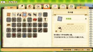 利用在開拓過程以及在牧場生活中獲取的素材,如「木頭」、「草」、「花卉」、「石頭」等,便可製作各式各樣的物品。 不過直接使用上述素材的話,能製作的東西僅限一小部分。透過「加工機」把素材加工後,能夠製作的物品種類便會隨之提升!
