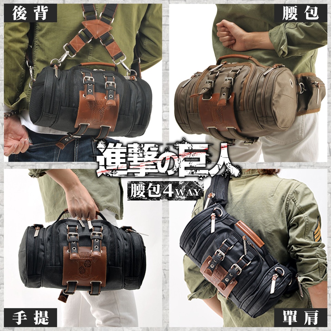 腰包共有四種不同的背法,可變波士頓包、腰包、單肩包、後背包,各種背法一應俱全,強大的功能設計跟立體機動裝置一樣厲害。
