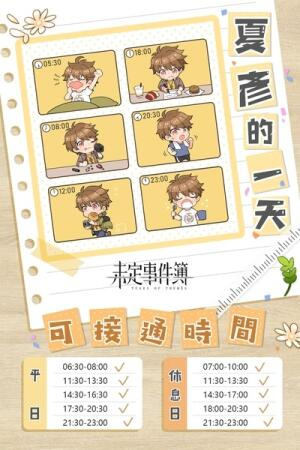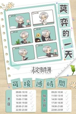 《未定事件簿》是一款律政戀愛推理遊戲。遊戲中玩家將扮演忒彌斯事務所的新人律師,與四位男主角攜手解決離奇委託,並肩前行,共赴一場刻骨銘心的戀愛冒險之旅。《未定事件簿》結合了戀愛與推理的元素,在滿足玩家戀愛玩法需求的同時,也讓「推理」為玩家的戀愛旅程增加了一絲不一樣的色彩。